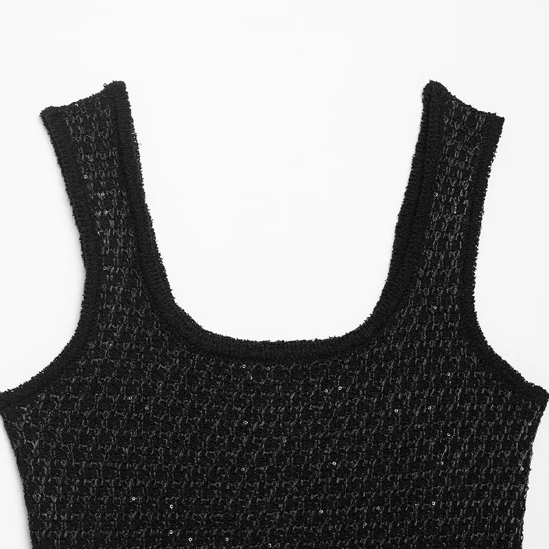 Willshela Women Fashion Black Pullover Knitted Vest Tank Tops Vintage Square Collar Sleeveless Female Chic Lady Vest