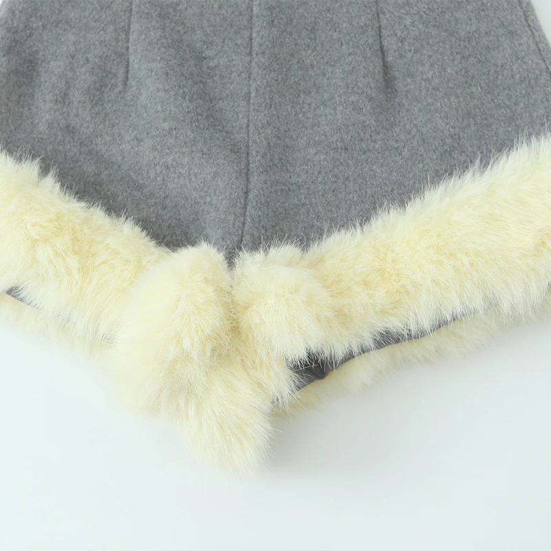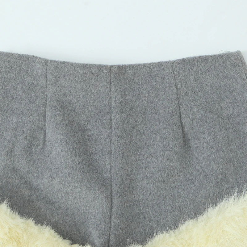 Willshela Women Fashion Faux Fur Grey Side Zipper Mini Shorts Vintage High Elastic Waist Female Chic Lady Shorts