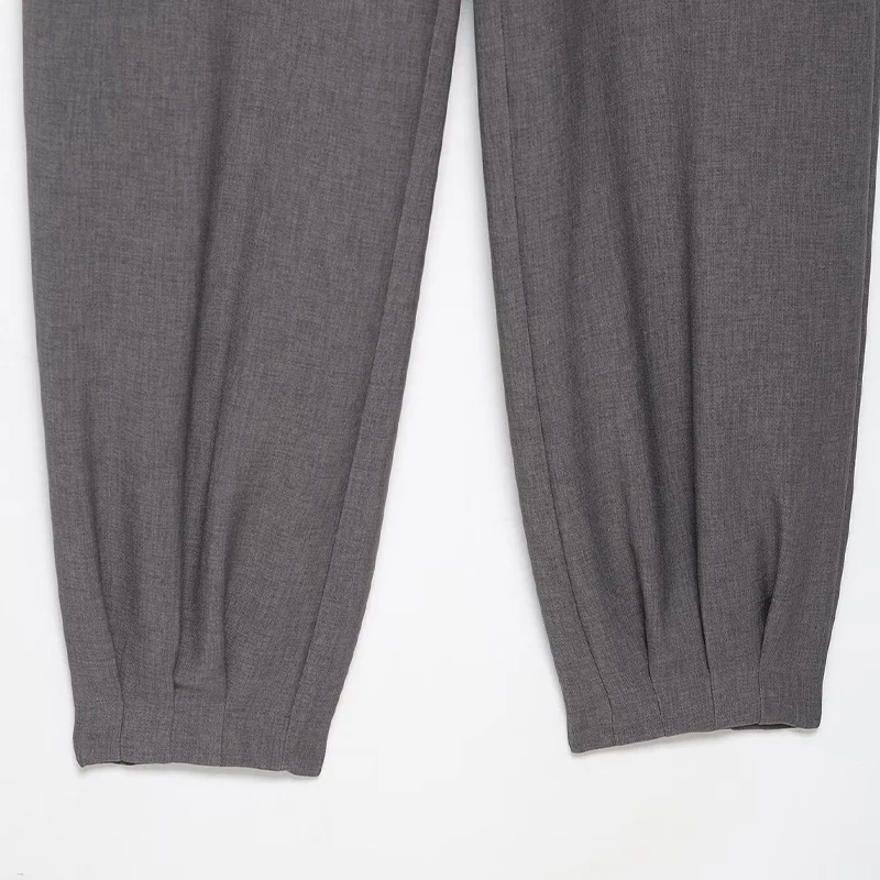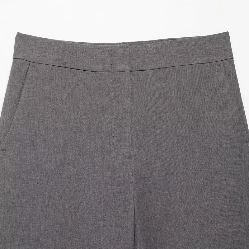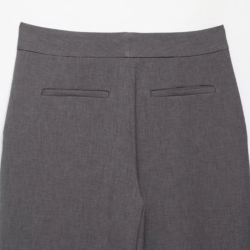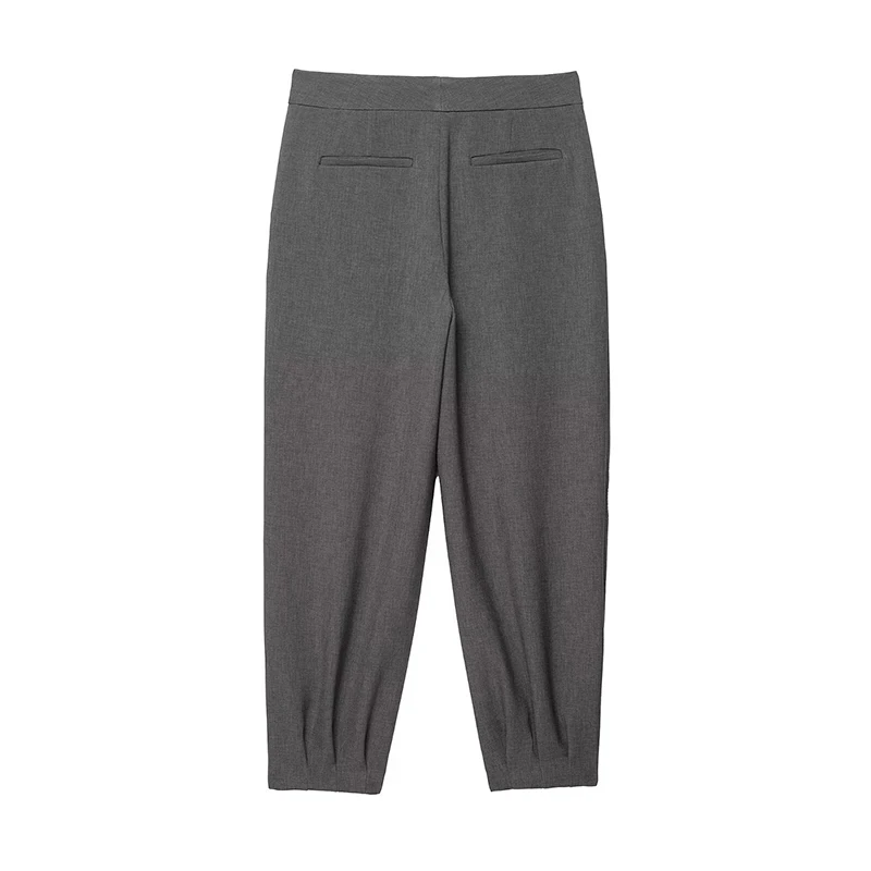 Willshela Women Fashion Grey Front Zipper Bloomers Pants Vintage High Waist Full Length Female Chic Lady Trousers