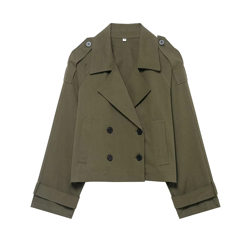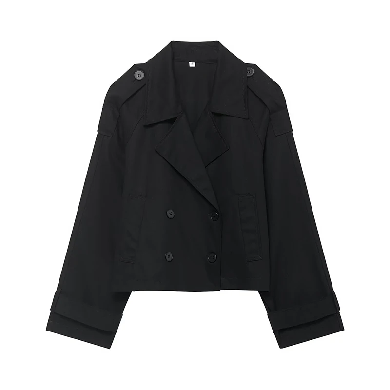 Willshela Women Fashion Solid Double Breasted Short Trench Jacket Vintage Notched Neck Long Sleeve Female Chic Lady Coat Outfits