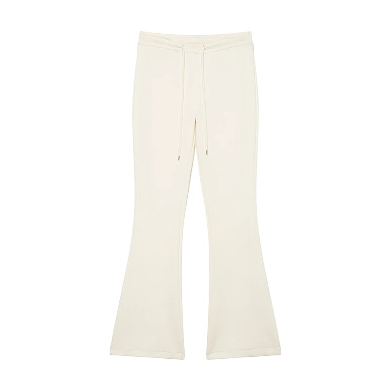 Willshela Women Fashion Solid Drawstring Flare Pants Vintage High Elastic Waist Full Length Female Chic Lady Trousers