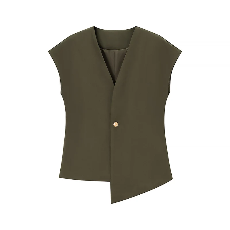 Willshela Women Fashion Solid Single Button Sleeveless Jacket Vintage V-Neck Vest Female Office Lady Waistcoats