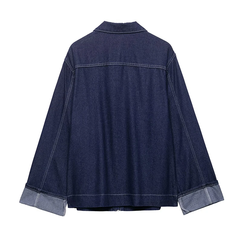 Willshela Women Fashion With Pockets Denim Blue Front Zipper Jackets Vintage Lapel Neck Long Sleeves Female Chic Lady Outfits