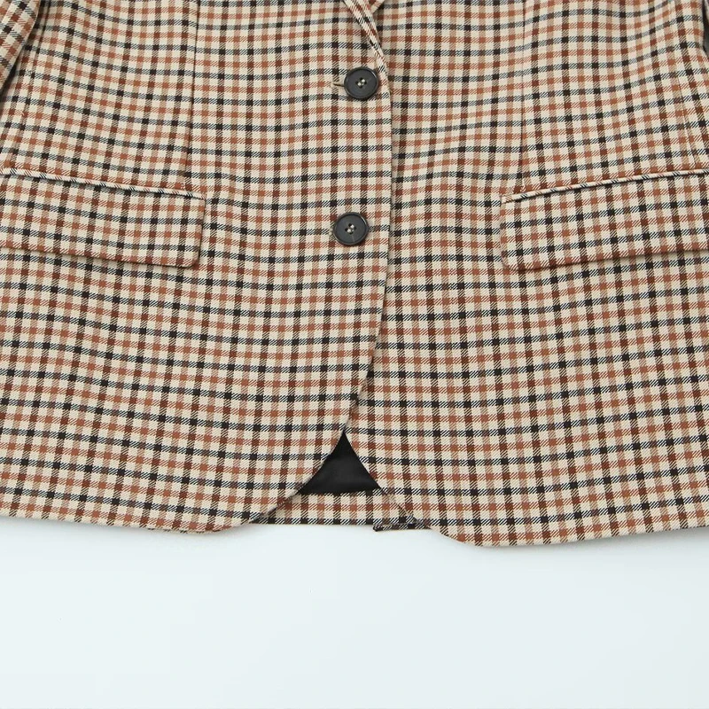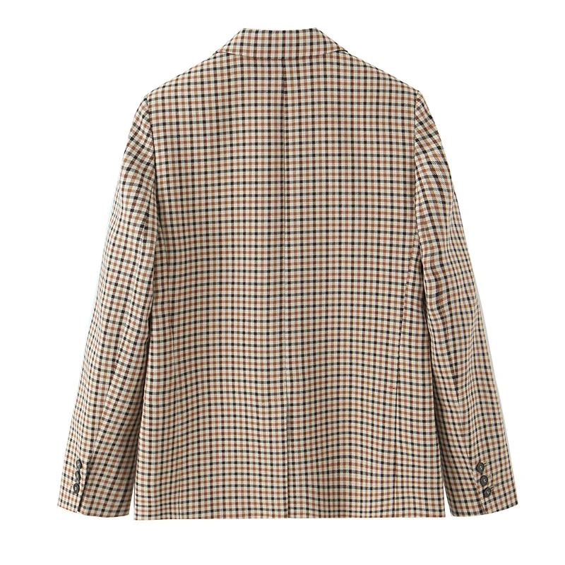 Willshela Women Fashion With Pockets Plaid Single Breasted Blazer Vintage Notched Neck Long Sleeves Female Chic Lady Outfits